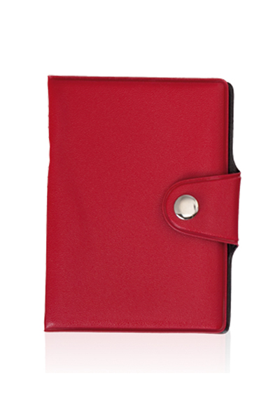 Porta biglietti da visita con 10 scomparti, chiusura con bottone.