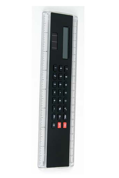 Righello con calcolatrice incorporata. Riga 20 cm. Pile bottone incluse.