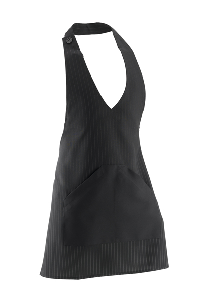 Grembiule femminile con doppia tasca frontale e regolazione del colare mediante bottone. Dimensioni 85 x 70 cm. Poliestere 180 gr/m2